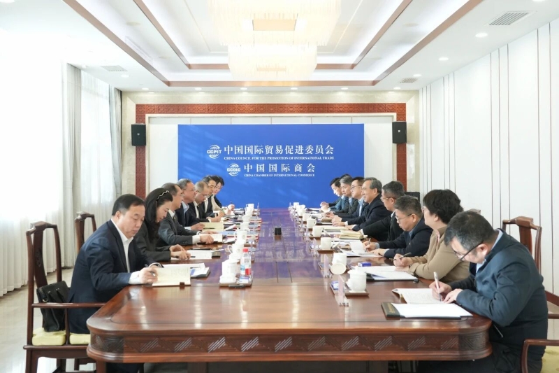 倪真與中國貿(mào)促會(huì)黨組書記、會(huì)長任鴻斌會(huì)談
